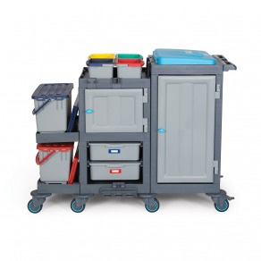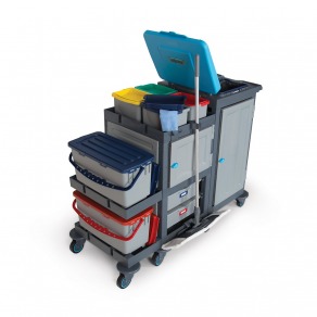 Carucior profesional de curatenie atribuit in special in serviciile de transport de consumabile medicale si colectarea deșeurilor medicale din spitale si diverse institutii sanitare.