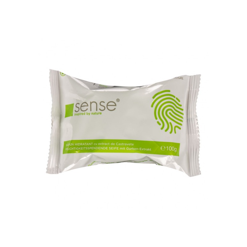 Sapunul Sense 100 gr este realizat 100% din grasimi vegetale (ulei de palmier si ulei de cocos)