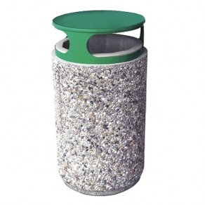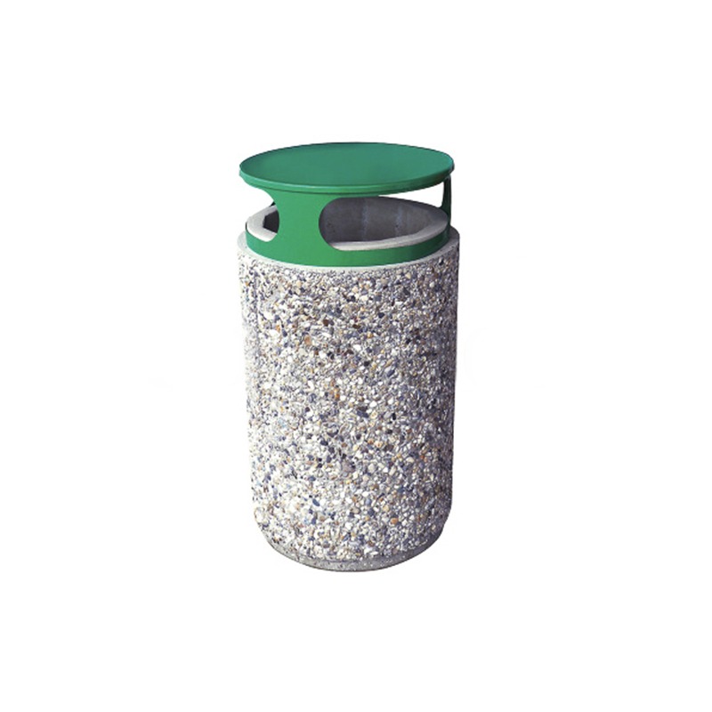 Cosul de gunoi din beton are in partea de jos un orificiu de scurgere, folosit pentru ancorare.