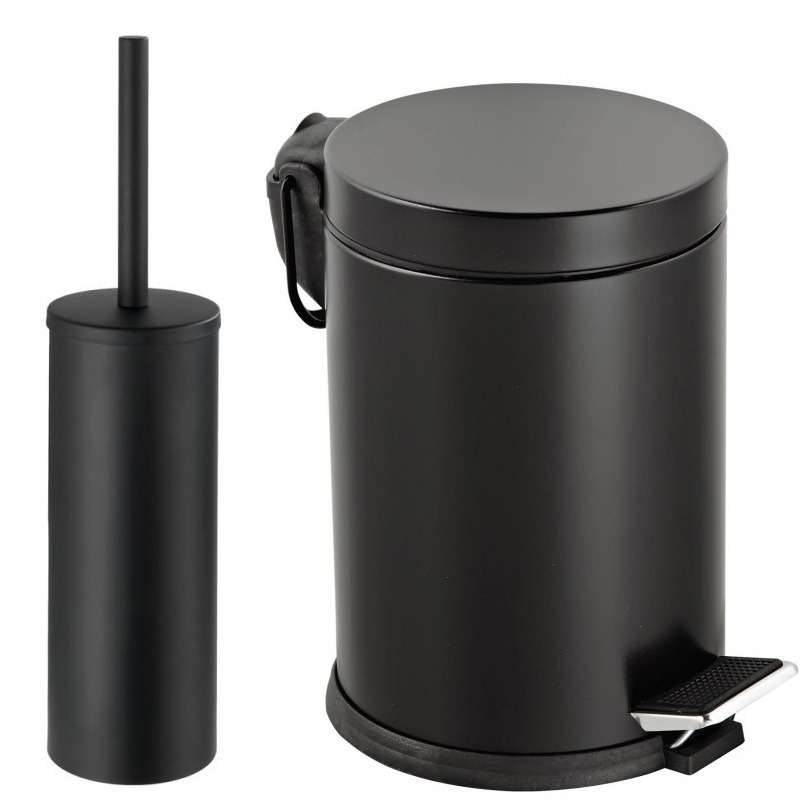 Set cos gunoi otel negru cu pedala 5l + perie wc otel negru
