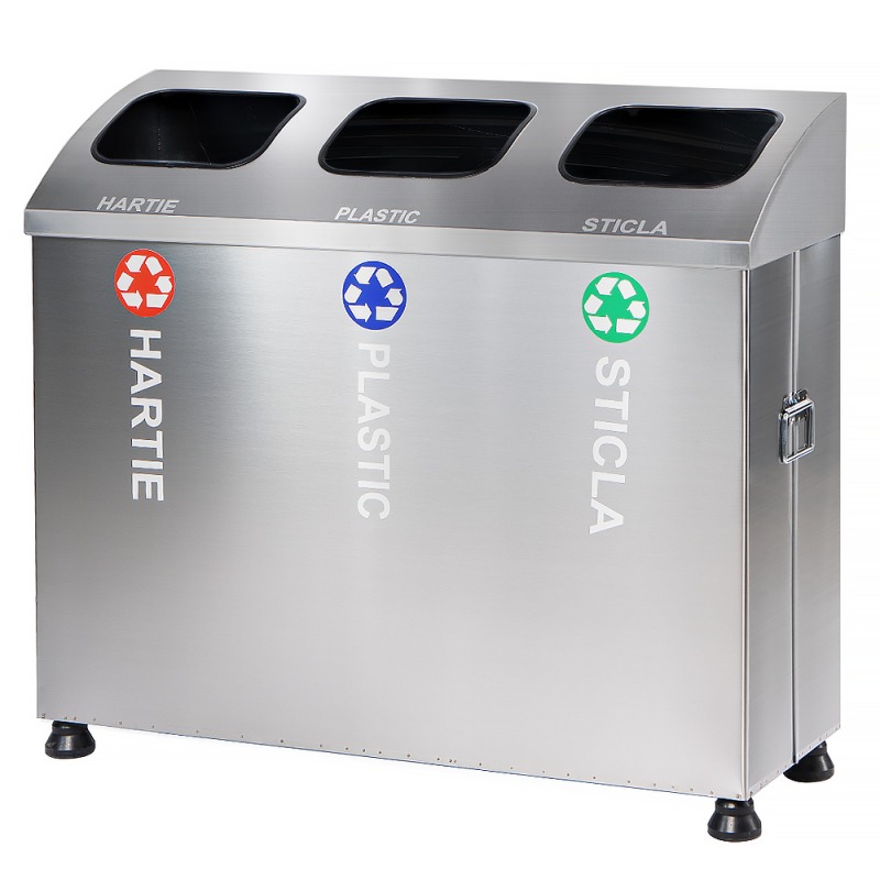 Set 3 cosuri gunoi inox colectare selectiva, cos reciclare gunoi - 3*54 litri