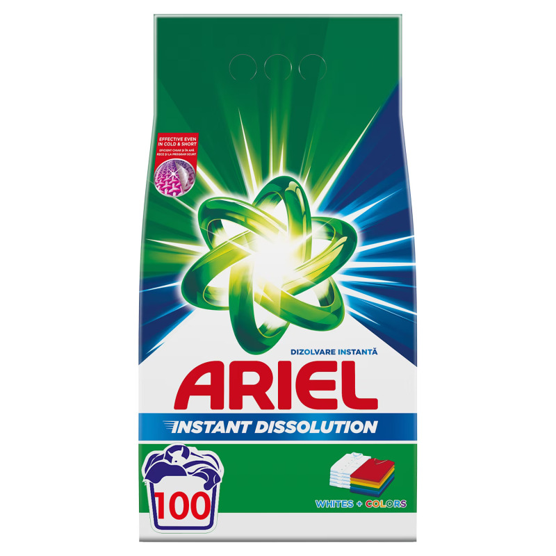 Cu o capacitate de 7.5 kilograme, detergentul Ariel se poate utiliza pentru pana la 100 spalari.