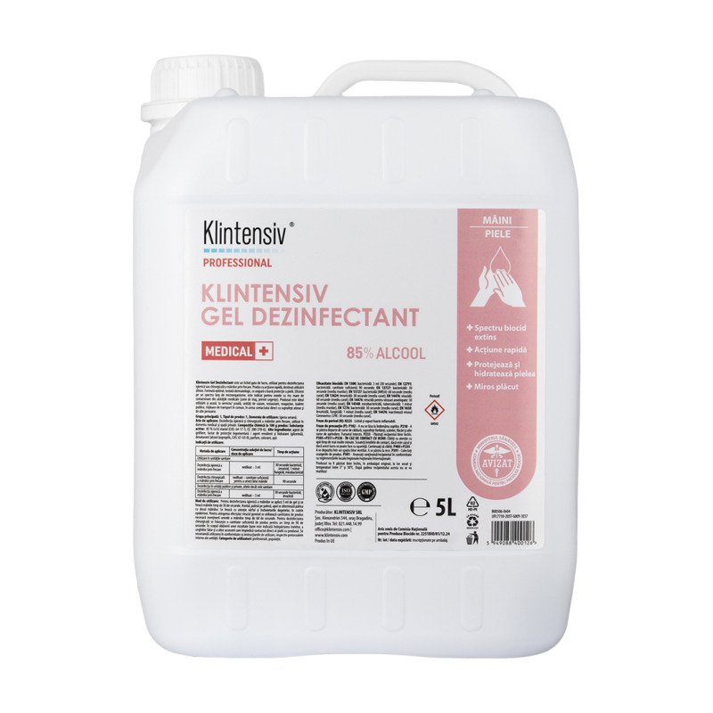 Dezinfectant gel pentru maini Klintensiv, biocid, avizat MS, 5 litri