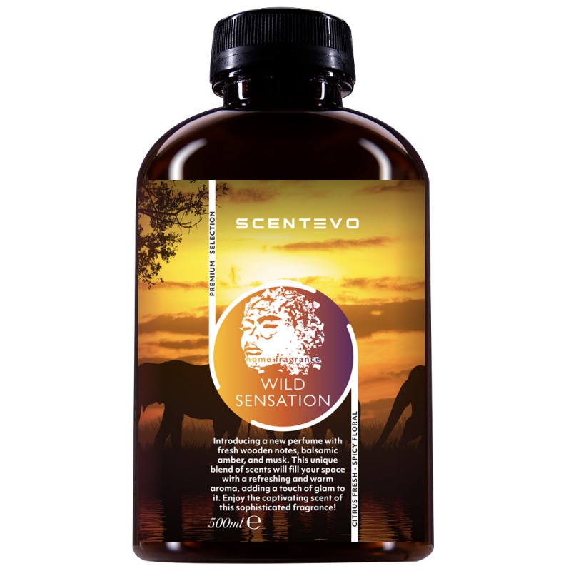Wild sensation este un parfum ambiental in care se regasesc esente de grepfrut, eucalipt, bergamota, tabac, violeta, tonka, ambra si mosc si isi aduce contributia la crearea unei ambiante fresh si elegante. Grepfrutul adauga o nota acrisoara si energizanta, in timp ce eucaliptul si bergamota ofera o aroma sic. Tabacul si violeta subliniaza caracterul sofisticat al odorizantului de camera, in timp ce tonka, ambra si moscul contribuie la crearea unei atmosfere seducatoare.