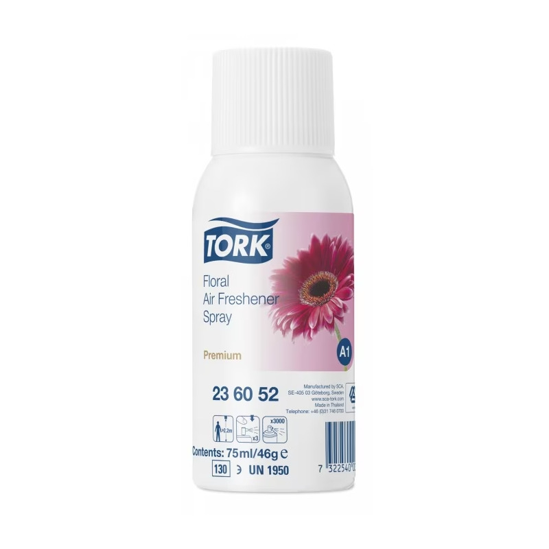 Controlati mirosurile din toaleta in mod eficient cu produsele odorizante spray Tork, cu aroma florala. Spray-urile contin uleiuri parfumate concentrate si agenti de neutralizare a mirosului pentru eliminarea mirosurilor neplacute, oferind o prospetime de durata a aerului din toaleta. Spray-urile sunt adecvate pentru Dozatoarele Spray Odorizant Tork.