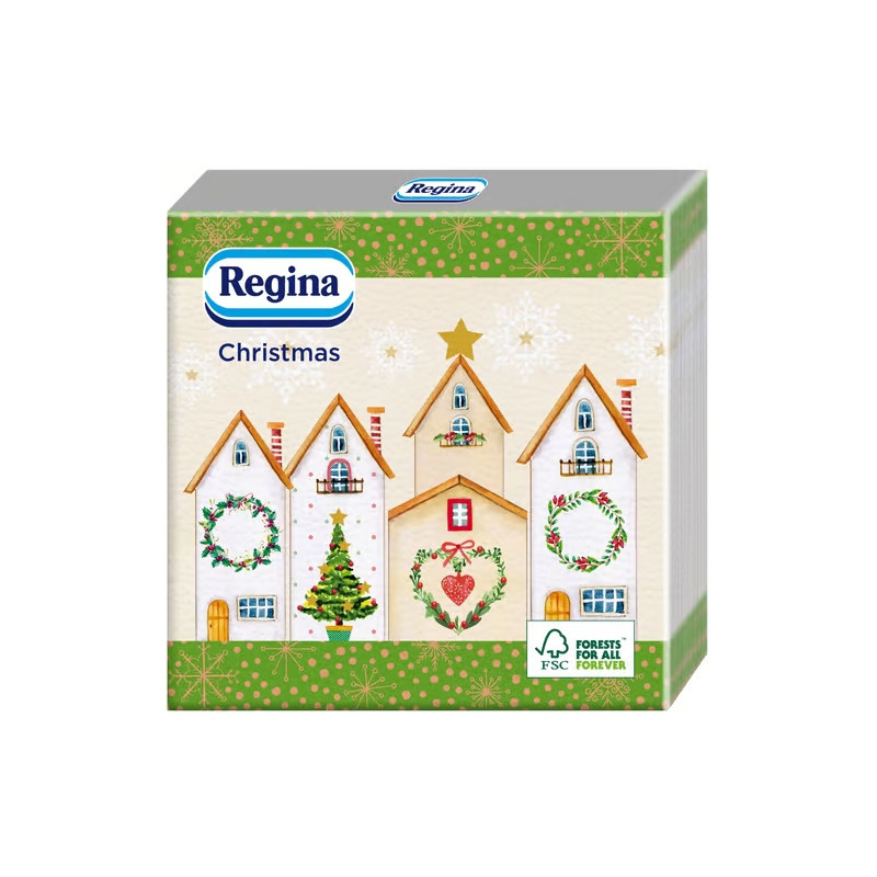 Servetele masa Craciun, 33x33 cm, 15 buc/set, model casuta, 3 straturi