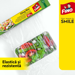 Folie de plastic Fino 30m x 29cm, este ideala pentru acoperirea, ambalarea, congelarea si depozitarea alimentelor. Prin inchidere etansa, pastreaza prospetimea si aromele alimentelor. Impingeti butonul de carton situat pe lateralele cutiei pentru a mentine rola de folie in interiorul cutiei in timpul folosirii. A nu se folosi direct in cuptorul de aragaz, pe gratar sau in cuptorul cu microunde.