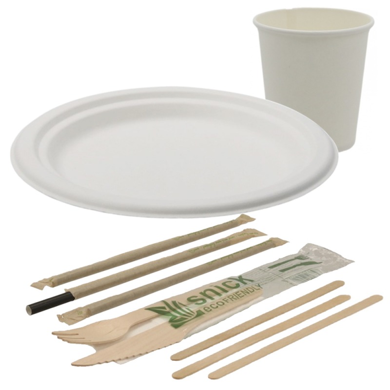 1 set Set tacamuri lemn ECO ambalate, cutit + furculita + servetel, 100 buc/set COD: PHS-9782