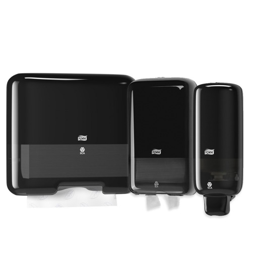 Linie dispensere Tork negru, dispesnser sapun lichid, hartie igienica, prosoape pliate